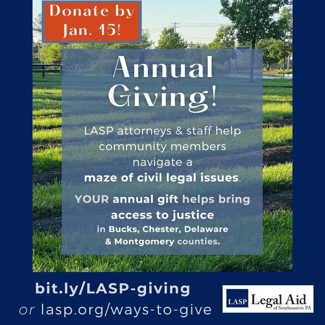 Every dollar given expands our ability to assist low-income community members and makes justice more equally accessible in Bucks, Chester, Delaware and Montgomery counties.