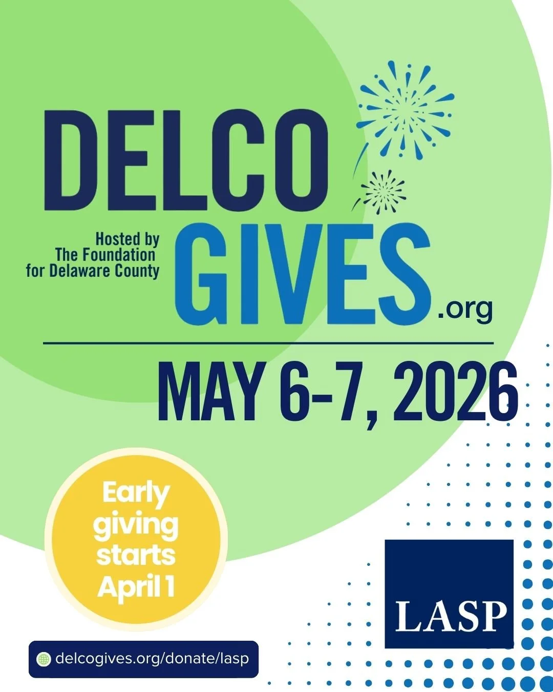 This spring, LASP is participating in the third annual Delco Gives day! Hosted by the Foundation for Delaware County, Delco Gives is a county-wide effort to raise awareness and funds for nonprofits like LASP that provide important services to Delaware County residents.